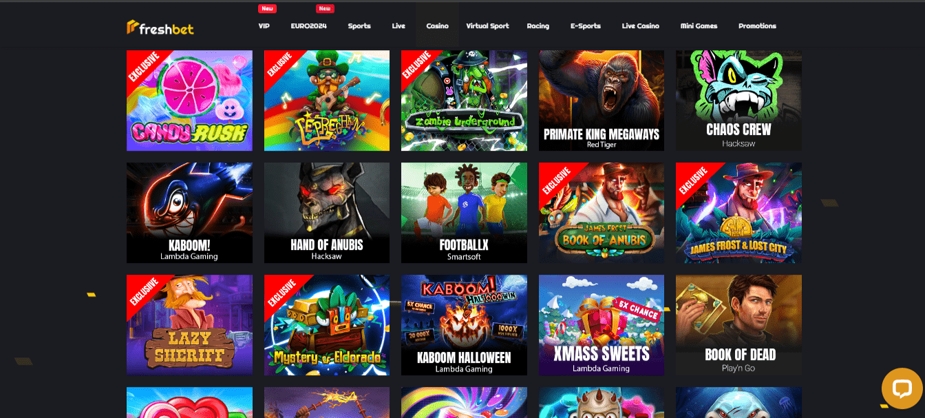 FreshBet is a brand-new, all-crypto online casino that launched in 2021 and offers a huge selection of gaming options to its patrons. In addition to slots, several varieties of Poker, Blackjack, and Roulette, and other games, it combines an enormous sportsbook section with hundreds of odds on more than 20 sports. High-quality visuals and a giant, interactive banner showcasing the many gaming sections and current promotions are features of the website's slick, modern design.